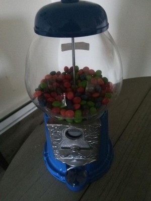Serve candy with a side of vintage-looking fun with the 11-Inch Mini Candy Dispenser by Great Northern Popcorn. Inspired by iconic candy machines from the 1920s, the premium old-fashioned design of this candy machine in fun blue features a clear globe made of durable glass and a cast metal base with vintage-style engraving on the coin mechanism's faceplate. This candy machine dispenser dishes out gumballs, nuts, jellybeans, and other bite-sized treats up to 0.62-inches in diameter for flexible use at home and during parties or special occasions.