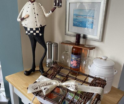- The gifts come packaged in an elegant covered willow basket with a fabric liner.