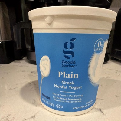 From breakfast to post-workout snacks to alternative baking, you'll be glad to have a 32-ounce container of Greek Plain Nonfat Yogurt from Good & Gather™ on hand. This unflavored yogurt is great for a variety of uses in the kitchen — mix in some berries and add a drizzle of honey for a delicious, not-too-sweet way to start your day, use as a base for a smoothie with spinach, banana, blueberries and cocoa powder to refuel after a gym session or incorporate into cakes and brownies for extra moist treats. However you choose to enjoy this plain Greek yogurt, you're sure to appreciate that it's sourced from farmer-owned cooperatives and made with no artificial sweeteners, flavors, colors or preservatives, and contains 0% milk fat and 18 grams of protein per serving.Our farmers pledge not to treat their cows with rBST. No significant difference has been shown between milk derived from rBST treated cows and non-rBST treated cows.