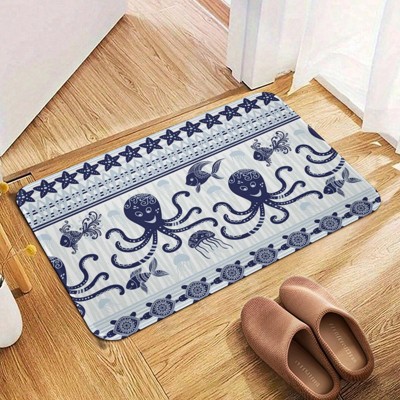 Green and Purple Cthulhu Octopus Bath Mat, Non-Slip Backing Water Absorbent Anime Rug for Gothic Bathroom Decor, Fantasy Game Room Gift