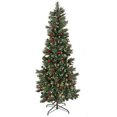 Green and White, 7FT Artificial Christmas Tree with 870 Branch Tips and Metal Stand , Christmas Decor for Home and Office