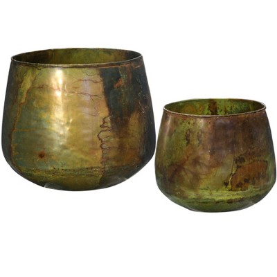 Green Decorative Planters with Gold Accents Set of 2 by Melrose