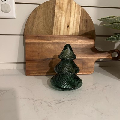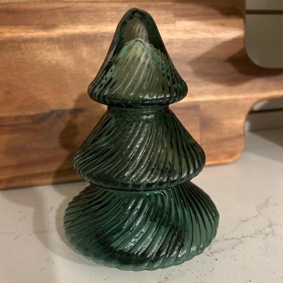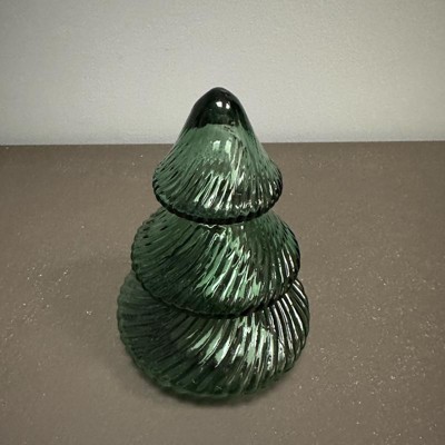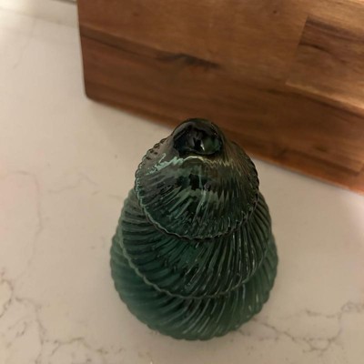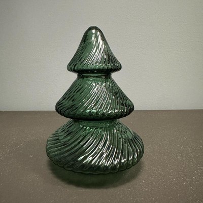 Bring crystalline charm to your holiday decor with this Glass Tree from Threshold™. This green glass Christmas tree is designed in a six-inch, three-tiered cone silhouette and adorned with a ribbed swirl pattern for an artisanal vibe. Display it on the mantel, console table, or as a centerpiece on your dining table to instantly spruce up your space with a touch of refined sparkle.