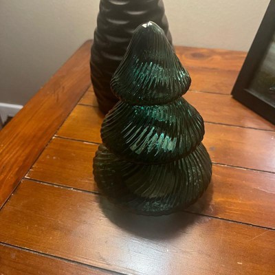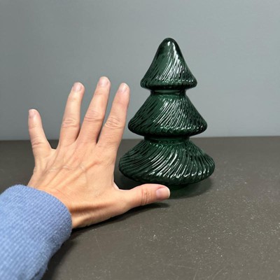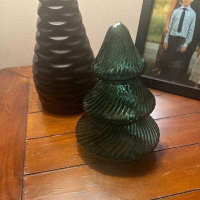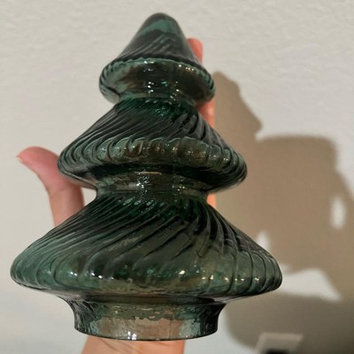 [This review was collected as part of a promotion.] This adorable Christmas decoration is the perfect addition to your collection. It is a smaller sized Christmas tree that is made of a glass material. I love the texture that is on the glass as well. It is lightweight and a pretty forest green. This would be great paired with other Christmas decorations or on its own. I place this on our bar downstairs to add a festive touch!