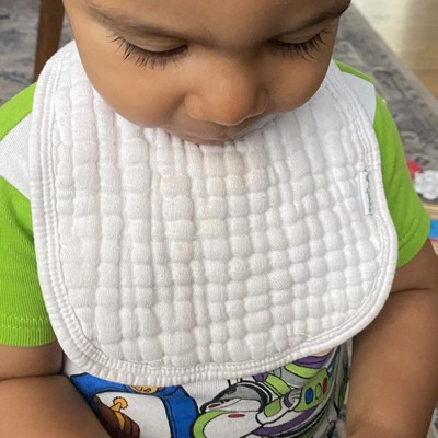 - Four absorbent layers of 100% organic cotton muslin protects against drips and drools