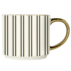 Green Stripe 14oz. Gold Handle Coffee Mug