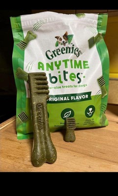 - Bite-Sized Dog Treats: Greenies Anytime Bites Dog Treats Original Flavor are bite-sized for frequent treating, making this dog treat ideal for rewarding your furry friend throughout the day.