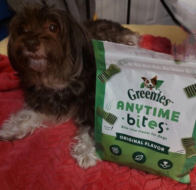 - 10.3 oz. Bag: Contains one (1) 10.3 oz. bag of Greenies Anytime Bites Dog Treats Original Flavor.