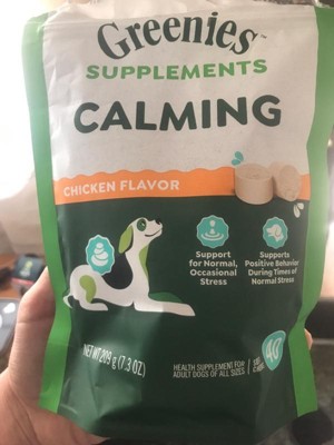 My dog loves this brand so much greenies this chewy supplements calming help a lot to my baby she get nervous on holidays season or when it’s raining. This calm my baby so quickly.