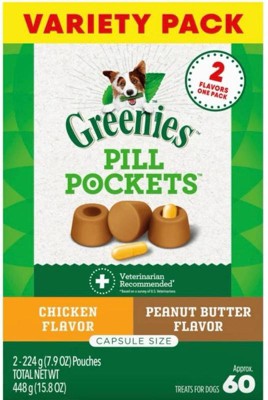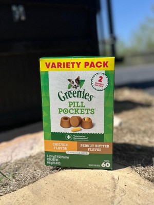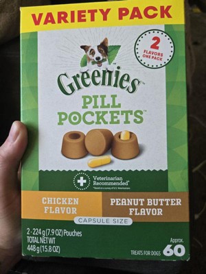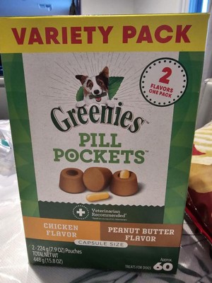 Greenies Pill Pockets Capsule Size Chicken and Peanut Butter Flavor Variety Pack Adult Chewy Dog Treat - 15.8oz