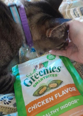 • Bite-Sized Cat Treats: Feline Greenies Smartbites Skin & Fur Health Cat Treats are bite-sized cat treats with a benefit.