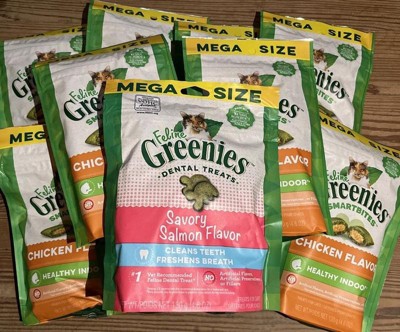 My cats LOVE greenies. They go absolutely feral for them. No strong scent study packaging cats can’t get into and a good ingredient list making them the perfect snack.