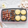 [This review was collected as part of a promotion.] I have used this griddle several times. I loved being able to do a full breakfast on one skillet. I got pancakes, sausage, bacon and eggs made all at once. It's easy to clean and I love that it has a pop of color that matches the rest of my kitchen.