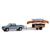 Produced by Greenlight Collectibles, this is a 1/64 scale 1988 GMC S-15 Sierra pickup truck and canoe trailer, with a canoe and kayak. This set is part of the Hitch & Tow Series 25. The set measures approximately 8"L x 2"W x 2"H, and it is made of plastic, rubber, and diecast. Per the manufacturer, this item is recommended for ages 8+ years, for display only. Comes with corkscrew jack for stand-alone display.