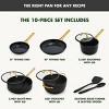 - 10-PIECE COOKWARE SET INCLUDES: 2.5QT Saucepan with Lid, 5QT Stockpot with Lid, 8” Frying Pan, 10” Frying Pan, 3.9QT Sauté Pan with Lid, Silicone Solid Turner, Silicone Slotted Spoon