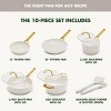 - 10-PIECE COOKWARE SET INCLUDES: 2.5QT Saucepan with Lid, 5QT Stockpot with Lid, 8” Frying Pan, 10” Frying Pan, 3.9QT Sauté Pan with Lid, Silicone Solid Turner, Silicone Slotted Spoon