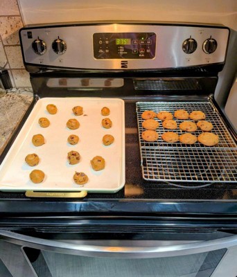 [This review was collected as part of a promotion.] These pans are absolutely amazing! They are beautiful and so light weight but high quality. When we made cookies they all baked evenly and we made a few different types of cookies. The cooling rack was also a huge help in moving cookies off the pan so we could continue baking more cookies. They were a breeze to clean and we had no issues with cookies sticking as I have had in the past with other pans. I also love the fact these are non chemical and non toxic!