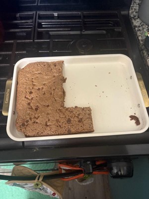 [This review was collected as part of a promotion.] The GreenPan bakeware so far is really nice. I made brownies and everything cooked evenly. The pans have a nice weight to them and the handles are a nice added touch as well.