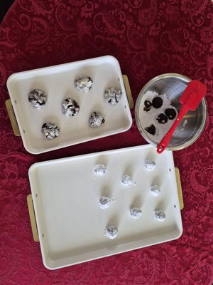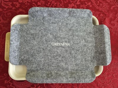 [This review was collected as part of a promotion.] The Original GREEN-PAN RESERVE 7-piece set is a bakers dream! I like the packaging and how it describes the pieces within and the company's healthy cooking objective. The sage /off white with gold handle pans are gorgeous. I absolutely love that they have also included their own designed pads to put in between the pans to help protect them while being stored! The bakeware is heavy duty with a non-stick coating. I made batches and batches of cookies and once the cookies cooled enough, I literally used my fingers to pick the cookies off the sheet pans! I also literally just wiped them clean. I'm so happy to be able to bake with this set!!
