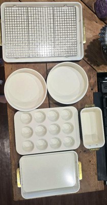 [This review was collected as part of a promotion.] I received this product for free in exchange for my honest review. Im in loooove with my bakeware They are nonstick easy to clean and store They cook very well and they area bit heavy which is great and thy seem very durable The colors are amazing The gold and the teal and the white Highly recommend