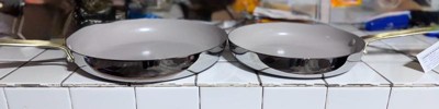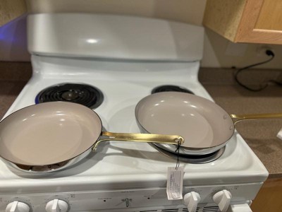 [This review was collected as part of a promotion.] I’ve been using these pans for a few weeks now and I’m really impressed. First off, they look absolutely beautiful in the kitchen, the stainless steel with the gold handles makes them feel really elevated and stylish, almost too pretty to cook with. Cooking performance is great too. They heat up evenly and quickly, so I don’t have to wait long before starting. The nonstick surface works really well; eggs, veggies, and even chicken slide right off with little to no oil. Cleanup is super easy, just a quick wipe and rinse and they’re good to go. The handles stay cool enough while cooking and are sturdy, so the pans feel high quality and durable. I also like having the two sizes, the 10” is perfect for smaller meals or eggs in the morning, while the 12” fits a whole dinner for the family. Overall, I’d definitely recommend this set if you want something functional but also stylish in your kitchen. They cook great, clean up easily, and look like high end cookware.
