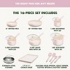 - THE 16-PIECE COOKWARE SET INCLUDES: 8” Frypan, 10” Frypan, 1.4QT Saucepan with Lid, 2.2QT Saucepan with Lid, 3.2QT Saute Pan with Lid, 5QT Stockpot with Lid, Stainless Steel Steamer, 17” x 1” Cookie Sheet, Solid Spoon & Turner, Slotted Spoon & Turner