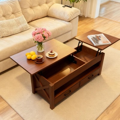 Elevate your living space with this vintage-inspired solid wood coffee table—the perfect blend of style and smart storage.Imagine a living room centerpiece that's not only stunning but also cleverly designed to simplify your life. With its clean lines and refined finish (available in a variety of colors), this table complements any decor—from minimalist modern to chic farmhouse. The solid wood provides both strength and texture, and the design incorporates advanced pneumatic lift for a clean and organized environment.