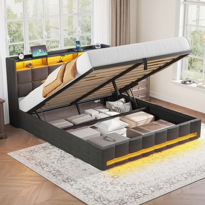 Subtle LED strips add adjustable ambient warmth—perfect for winding down or late-night reading. In a neutral finish that complements any decor, this bed fuses sturdiness, silence, smart storage and mood lighting to make your bedroom feel like home every night.