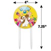 - FOOD SAFE ACRYLIC: Our colorful featured design is printed on food-safe acrylic. Image is 4.0" in diameter and the cake topper measures 7.25" in total height.