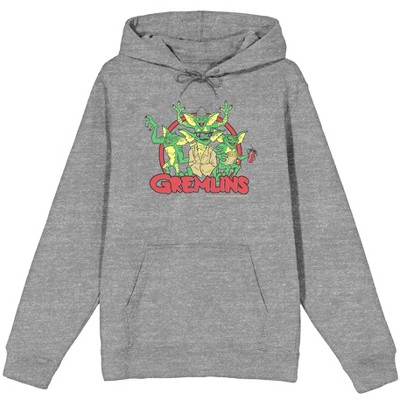 Gremlins Monsters & Logo Adult Heather Gray Long Sleeve Hoodie-XL