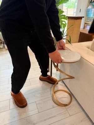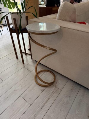 [This review was collected as part of a promotion.] Thank you, Linon and Influenster, for allowing me to test out the Linon Capiz Side Table with Metal Base in exchange for my earnest feedback and thorough review. This table is utterly elegant and elevates any space. I appreciate its small footprint. Its skinny sizing makes it a versatile piece that can be used all over the house and allows it many functions. This stylish side table will get a lot of use in my house as a drink holder, a catch-all near the couch, a plant stand, a photo display, and more. I love all things "white marble" and the touch of elegance that material brings to any space. This handy side table will get lots of use in my home. It offers the perfect height for use in sitting areas. What I especially like besides its gorgeous white marble surface and abstract metal stand, is that it offers leveling feet, so you can make quick adjustments in case your flooring is slightly uneven like it is in my antique home. This table is my new favorite piece of furniture. I definitely recommend it! I would buy it again and again!