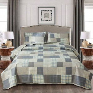 Grey Blue Yellow Patchwork Quilt, Lightweight Breathable Bedspread for Full/Queen Size