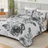 Grey Boho Floral Quilt Set Queen, 3 - Piece Reversible Bedspread with 2 Pillow Shams