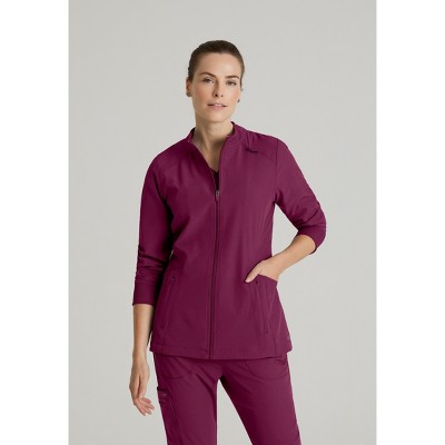 Grey's Anatomy by Barco Classic Women's Jamie 4-Pocket Crewneck Snap-Front Warm-Up Scrub Jacket 3X Large Wine.