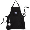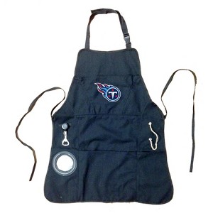 Cook up some team spirit with this Black Tennessee Titans Logo Grilling Utility Apron! Get ready to tackle any backyard BBQ with all of the fun features this apron has to offer. The easy adjustable neck strap and waist ties ensures a fit for most. Made from heavy-duty cotton canvas, the apron features the officially-licensed logo embroidered on the chest, five pockets for any grilling essentials, a rope cord for hanging a towel, and a retractable bottle opener. It even includes an insulated bottle or can holder!