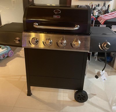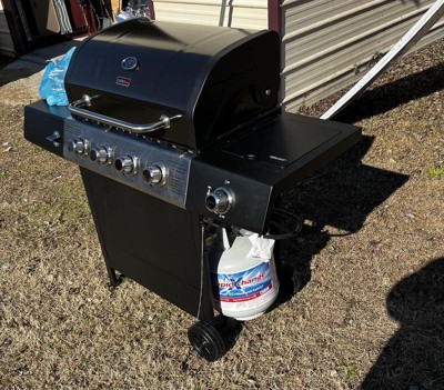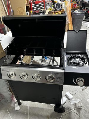 [This review was collected as part of a promotion.] This isn’t a bad grill. This grill would be great for a first time grill. It has 4 burners along with a side burner for pots. It’s very nice looking with the chrome knobs and panel. The lid has a temperature gauge so you can know how warm the inside is. It has hooks on the side to hold your utensils. It’s a very light grill. The grates are a very thin “cheap” type of material. The grill isn’t bad but cheap.. but it’ll get the job done.