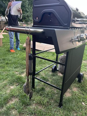 [This review was collected as part of a promotion.] Very nice grill with lots of features. Has a stainless steel knob panel, burners and lid. Features hooks on the side to hang grilling utensils and a bottle opener which none of my previous grills ever had. This grill has two nice size coated grates so you can grill 20 plus burgers depending on size you make. Also has shelves on both sides which makes for convenience for plates for the burgers or whatever else you're cooking. Nice easy startup with push and turn igniter and large temperature gauge for easy viewing. Assembly was not difficult at all.