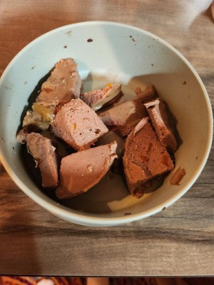 My dogs enjoyed this pate as a topping on their dry kibble. I don’t typically supplement with wet food, but will randomly mix it up for them for a little treat. They gobbled it down so I am guessing it was a welcome savory addition to their regular meal. They ate it so fast that I couldn’t get a good image of them enjoying their meal.