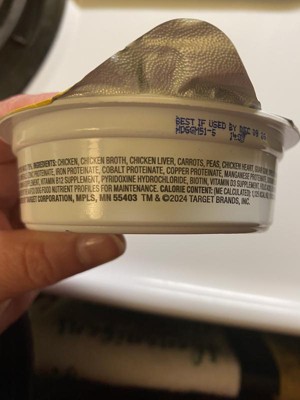 chicken, chicken broth, chicken liver, carrots, peas, chicken heart, guar gum, dried egg product, natural flavor, ground flaxseed, potassium chloride, cassia gum, xanthan gum, salt, natural grilled chicken flavor, calcium carbonate, minerals (zinc proteinate, iron proteinate, cobalt proteinate, copper proteinate, manganese proteinate, sodium selenite, potassium iodide), vitamins (vitamin e supplement, niacin supplement, d-calcium pantothenate, thiamine mononitrate, riboflavin supplement, vitamin a supplement, vitamin b12 supplement, pyridoxine hydrochloride, biotin, vitamin d3 supplement, folic acid), blueberries, cranberries, choline chloride.' '