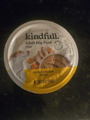 Treat your furry friend to this delicious Grilled Chicken Flavor Paté Wet Dog Food from Kindfull™. This 3.5oz pack is perfect for adult dogs. Made with real chicken as the first ingredient, it's a delicious choice for your dog, ensuring a tasty meal. Feed at room temperature and refrigerate unused portion. Ready to eat, this wet dog food is convenient and sure to make mealtime a hit with your pet.