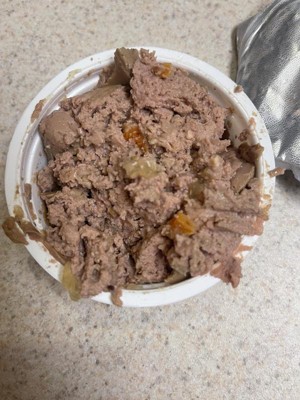 Our 7yr old Great Pyrenees mix absolutely destroyed this food… although at her weight (>80lbs) we would need to stock a ton of these as is with most moist dog foods, I haven’t been convinced yet to do mostly dry food with some wet mixed in… but this food will def be going into the line up. You can see the vegetables , etc in the mix .. and overall looks like a quality food that my dog was not stopping until it was all gone