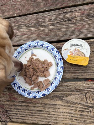 My dog gobbled this down he left nothing in his bowl. I had never purchased the kindfull brand before but I will definitely be buying it again. Good portion size and the food is easy to open the pate is soft and easy to put in the dog bowl.