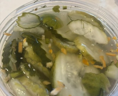 The pickles are delicious! Very spicy and well-rounded flavor. However, the packaging is more miss than hit - every time we go we have issues trying to find a container that’s not bulging or leaking, and inevitably several on the shelf are in that condition. We use a produce bag and transfer to a glass mason jar at home, but it would be nice to be able to just buy without needing to inspect the product. Grillo’s please fix your packaging, but keep the pickle the same! :)