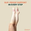 Support your circulation and move around safely with Gripjoy's stylish and cozy compression socks with grippers. These non-slip compression socks help improve blood flow without feeling constrictive with a compression measurement of 15-20 mmHg. In addition to being non-skid, our non-slip bottoms provide confidence and stability while moving about the house. They will also fit comfortably in your shoes. The socks are made with a luxurious cotton blend that is still breathable while maintaining a perfect fit. Fits shoe sizes 6-9. Made of 68% Cotton, 18% Polyester, 8% Spandex, 6% Nylon