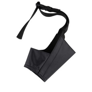 A muzzle is mask-like device placed over the snout of a dog to prevent injury from biting. When fitted properly, your dog should be able to pant, eat, and drink while wearing the muzzle. The Groomer Essentials Muzzle - 3 decreases the chances of biting and chewing. It's adjustable, washable, and allows for drinking and panting. The typical breeds it fits are labs and German Shepherds.