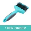 The Groomer Essentials Double/Soft Flexible Slicker Brush significantly reduces the strain on your hands compared to regular brushes. Its soft pads and pins are ideal for eliminating light mats and daily brushing. The double-headed slickers are great for larger dogs to save brushing time. Do not push down while brushing. Brush in the direction of the handle. When removing mats, brush with short, soft strokes.
