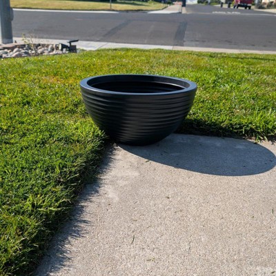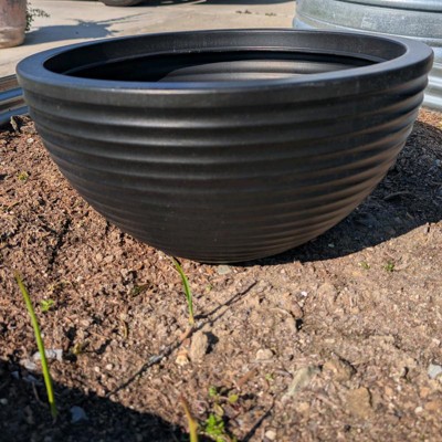 Grooved Bowl Outdoor Planter Black 20"x10" - Threshold™