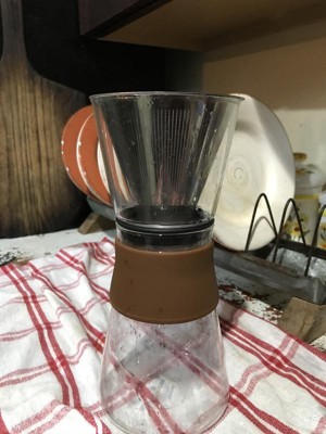 Love the sleek details on this coffee filter - glass body is heavy, definitely doesn’t feel cheap. Also love the middle soft silicon grip instead of cork material that other companies use, which can easily stain from coffee or water. It can make a couple cups of coffee, which I leave in the fridge overnight for cold brew. The permanent steel coffee filter is eco friendly and replaces my need to buy paper filters every once in a while which is also a huge plus:)