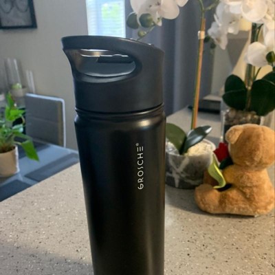 GROSCHE Chicago Steel 16 oz. Infusion Water Bottle Insulated Water Bottle Tea and Fruit Infuser Water Bottle Stainless Steel Flask - Charcoal Black