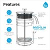- A truly premium quality large French press coffee and tea maker that is easy to use and features fine-crafted chrome housing and a heatproof Borosilicate glass beaker. Use coarse ground coffee for rich and full flavour in this French press coffee maker. This model can make up to 51 fl oz of rich and delicious coffee at a time, which is around 4-6 coffee mugs.